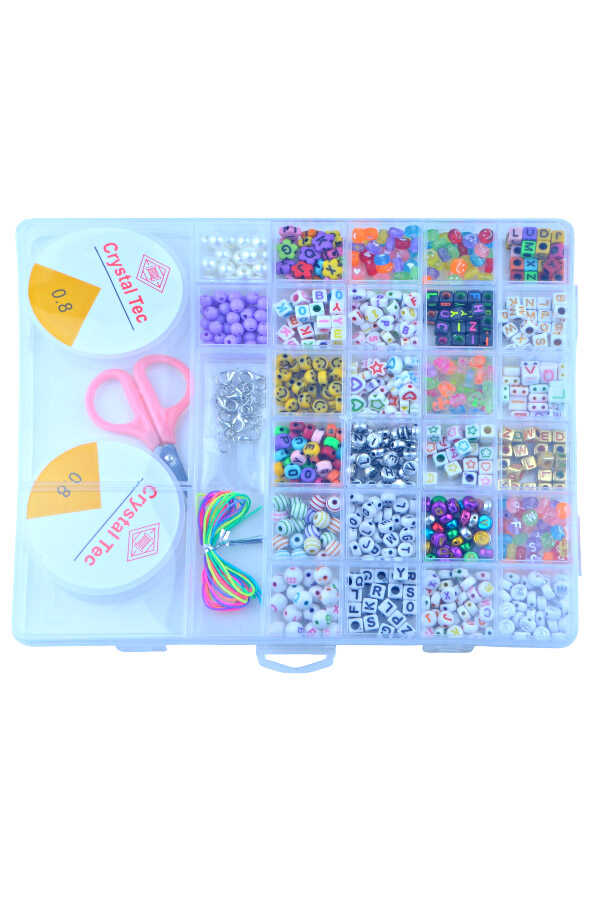Ürün Açıklaması Renkli boncuklar, harf figürleri, ip ve makas içeren bu pratik set; bileklik, kolye ve el işi tasarımlarınız için idealdir. Düzenli kutusu sayesinde kolay kullanım sunar, çocuklar ve hobi severler için eğlenceli ve yaratıcı bir deneyim sağlar.