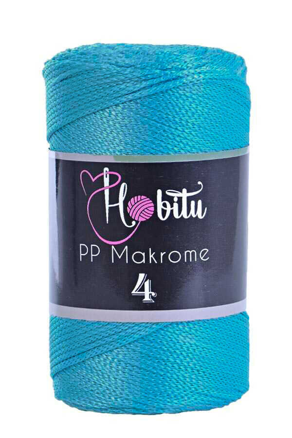 HOBİTU MAKROME 200GR NO:4 230 Turkuaz renk ip, %100 polipropilen içeriği, yaklaşık 2,5 mm kalınlığı, parlaklığı ve dayanıklılığı ile birçok farklı el işi projesine hayat vermek için mükemmel bir seçenektir. Canlı rengi projelere neşe katar. İşte bu ipten yapabilecekleriniz: